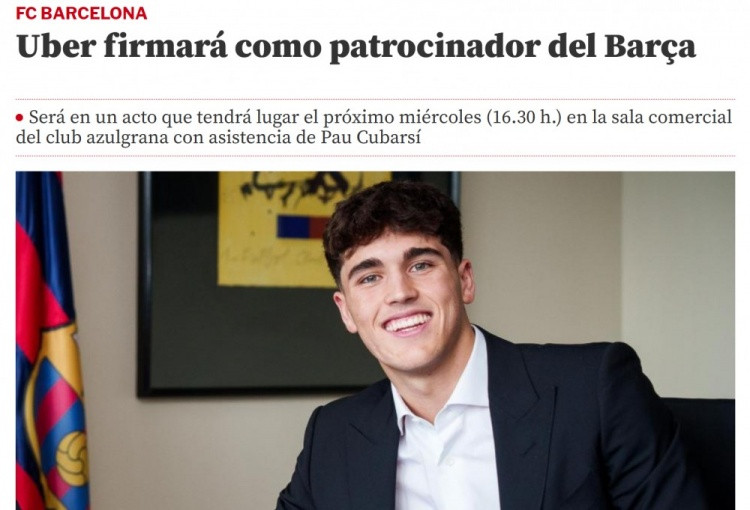Vào ngày 18 tháng 10, phương tiện truyền thông phương Tây "World Sports News" đưa tin Câu lạc bộ Barcelona sẽ ký thỏa thuận tài trợ với Uber. Sự kiện sẽ được tổ chức lúc 16:30 giờ địa phương vào thứ Tư tới tại Hội trường Thương mại của Câu lạc bộ Barcelona.