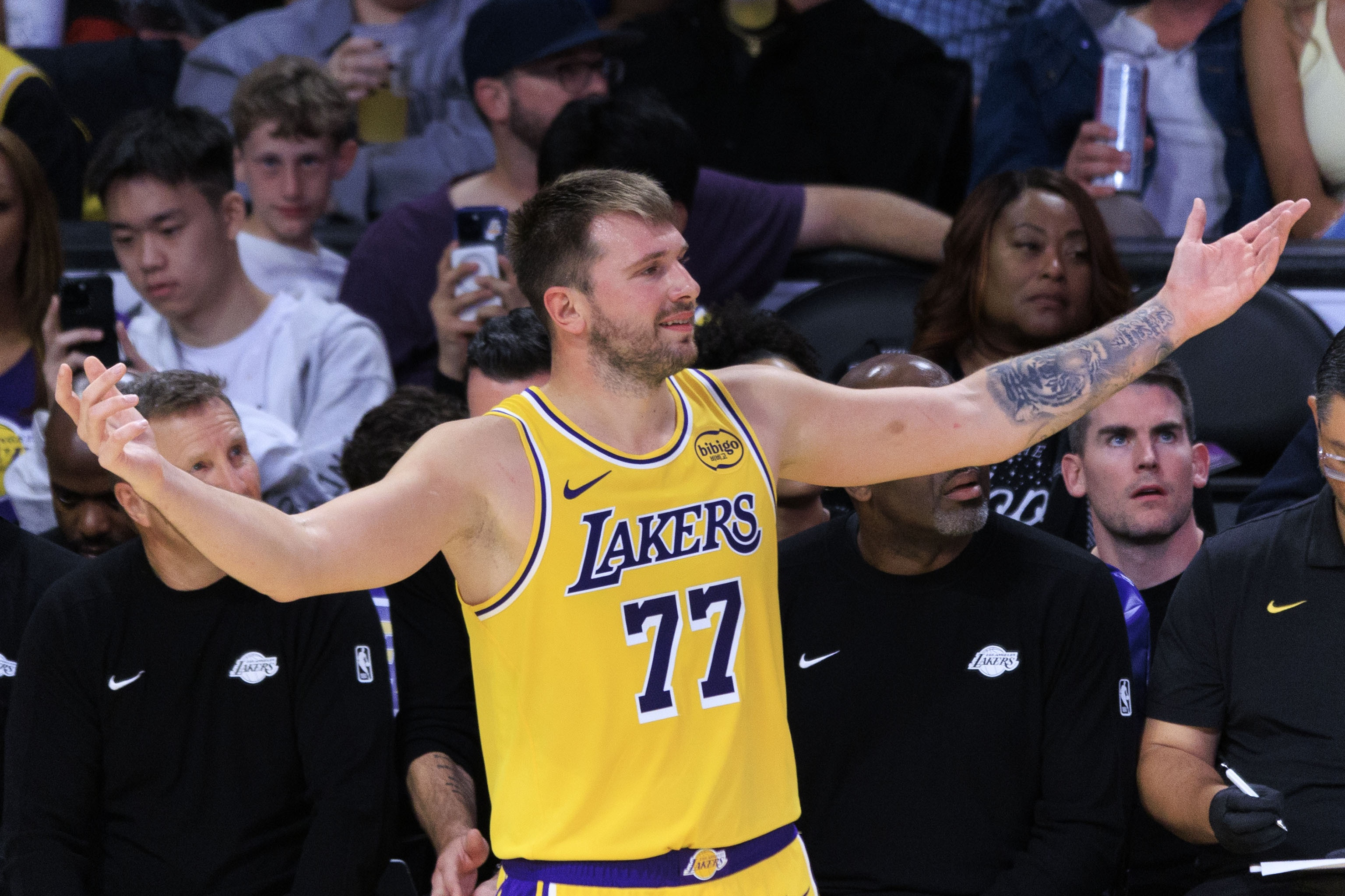Mùa giải NBA thường kỳ mới đã bắt đầu. Lakers và Warriors đã đối đầu trực tiếp trong trận đấu đầu tiên. Chung cuộc, Lakers thua Warriors với tỷ số 109-119. Doncic thi đấu 41 phút và thực hiện 17/27 cú sút, trong đó có 2/10 quả ba điểm và 7/10 quả ném phạt. Anh ghi được 43 điểm, 12 rebound, 9 kiến tạo, 2 cướp và 1 cú sút, với điểm cộng trừ là -8.